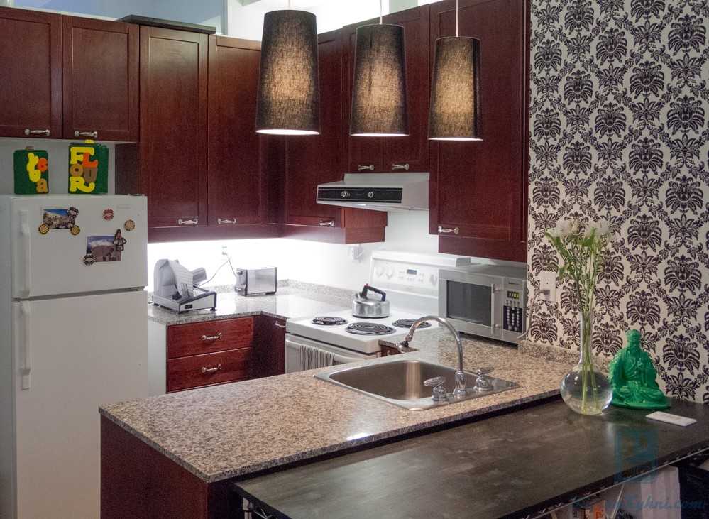 - панели из дерева, которые монтируются на 1/3 кухни;