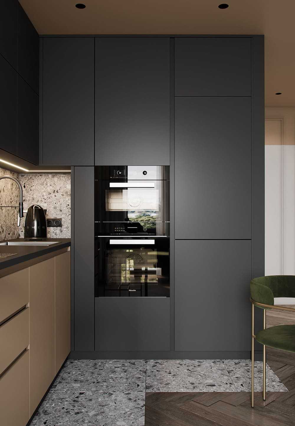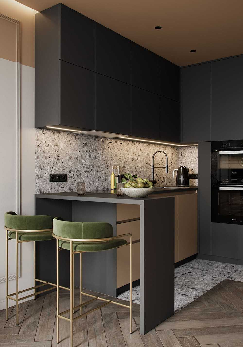 Темные тона подходят только для больших кухонь. Маленькая кухня с темными стенами и мебелью может стать еще меньше и ниже.