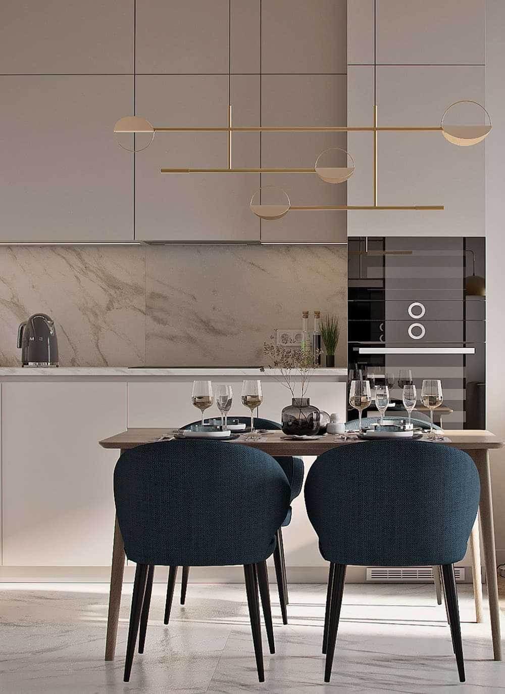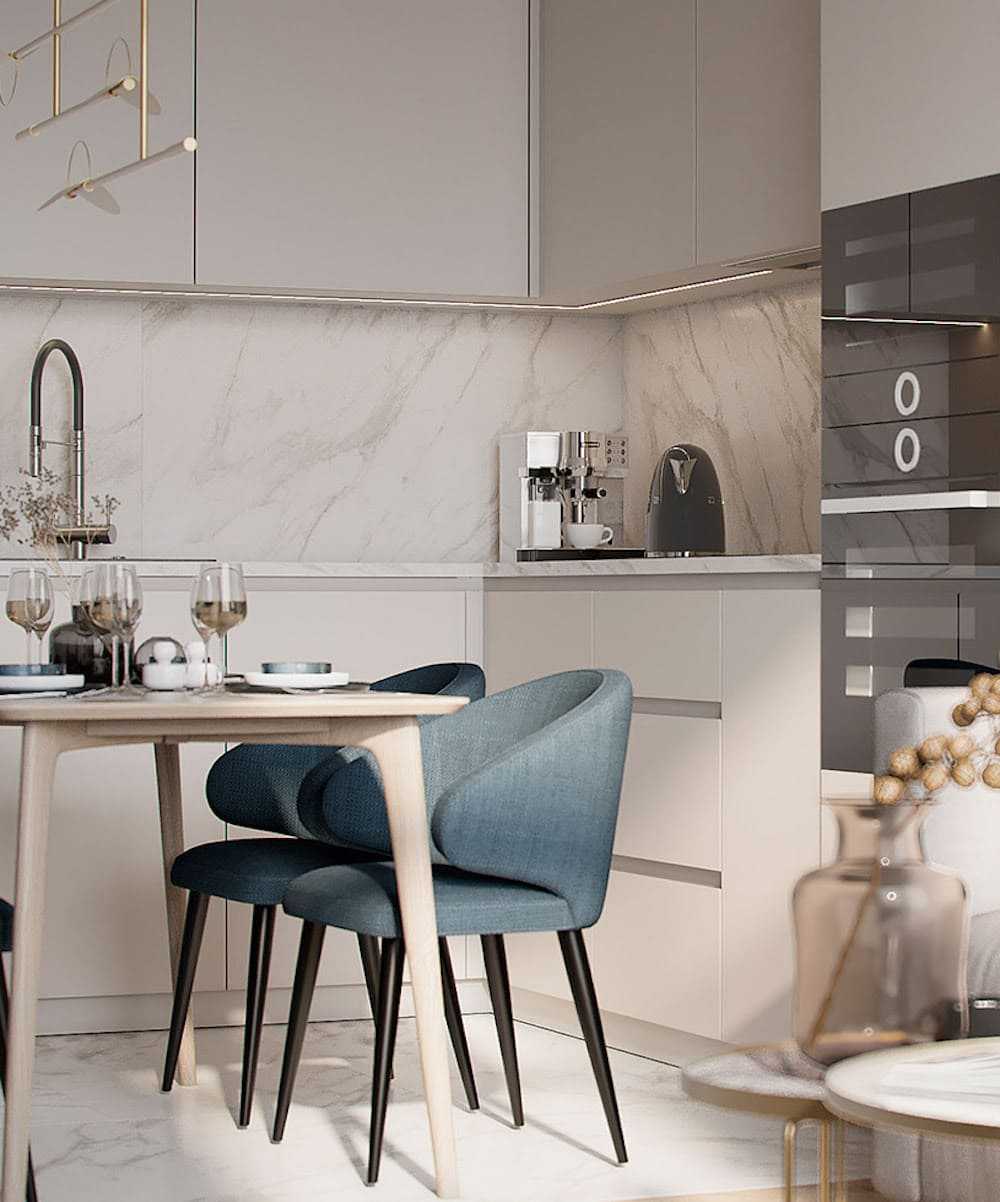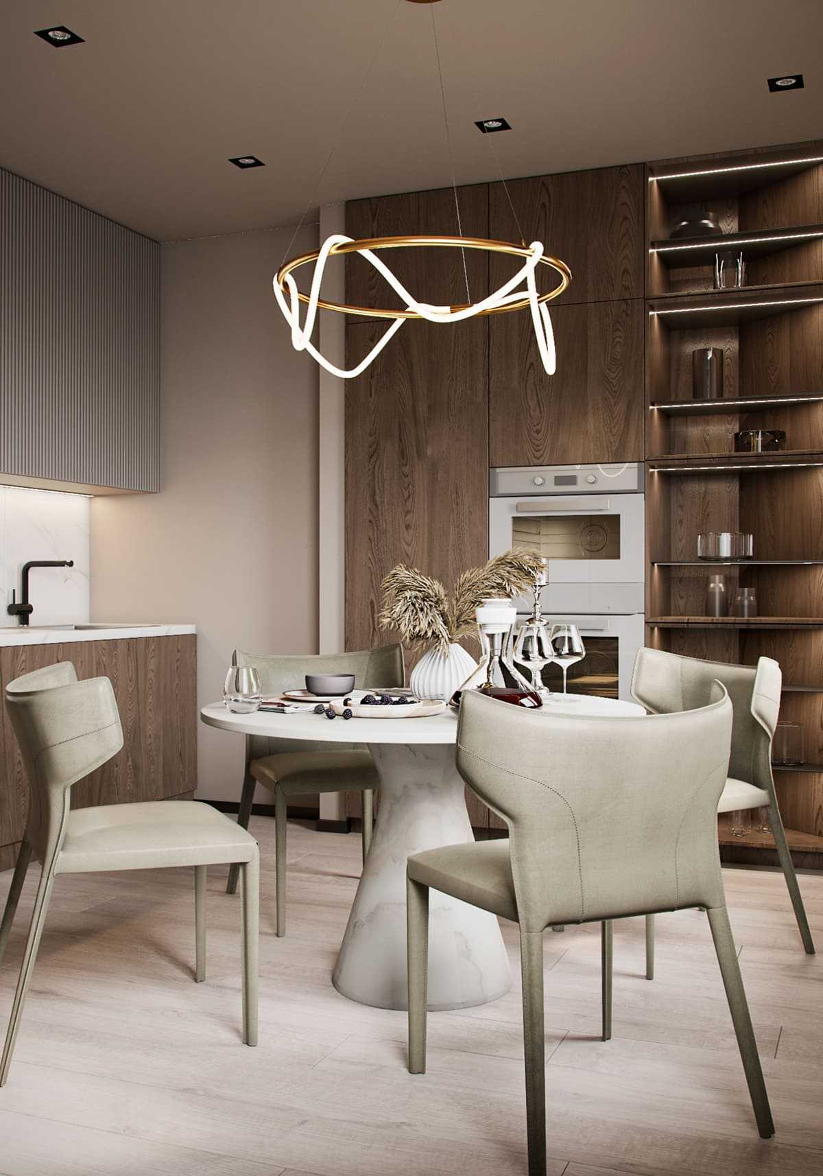 Светлая кухня в стиле арт-деко.
