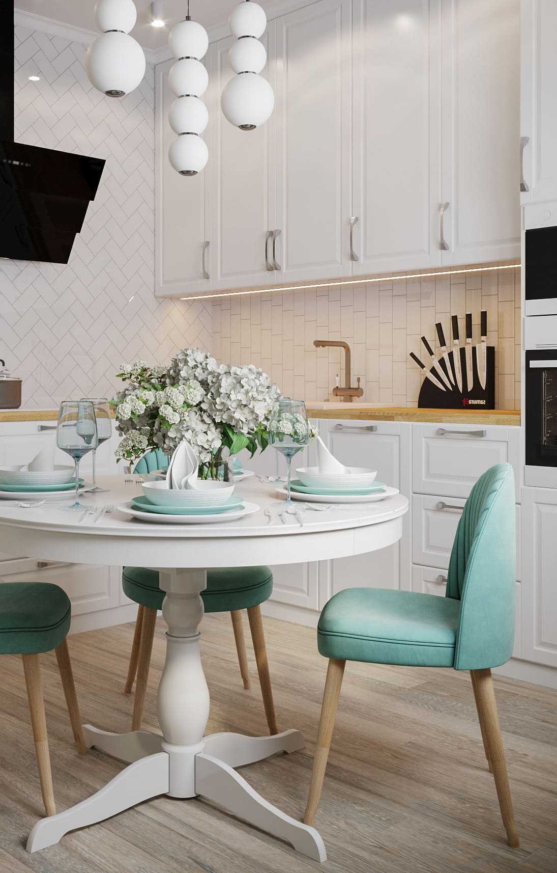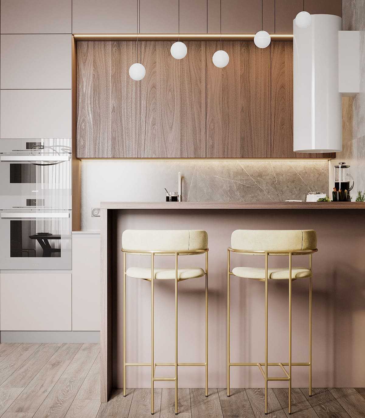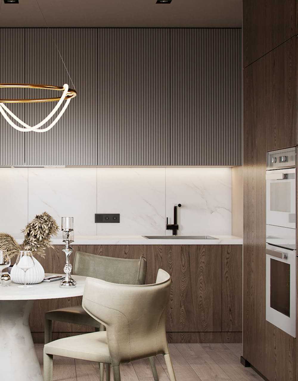 Светлая кухня в стиле арт-деко.