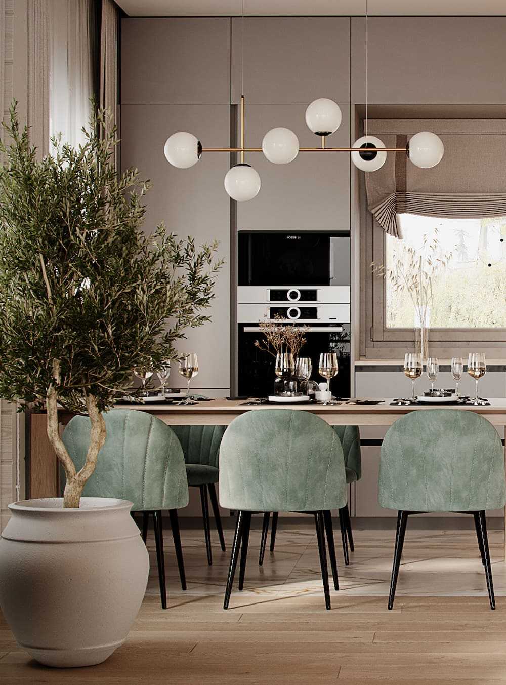 Кухня в необычном для ампира зеленом исполнении