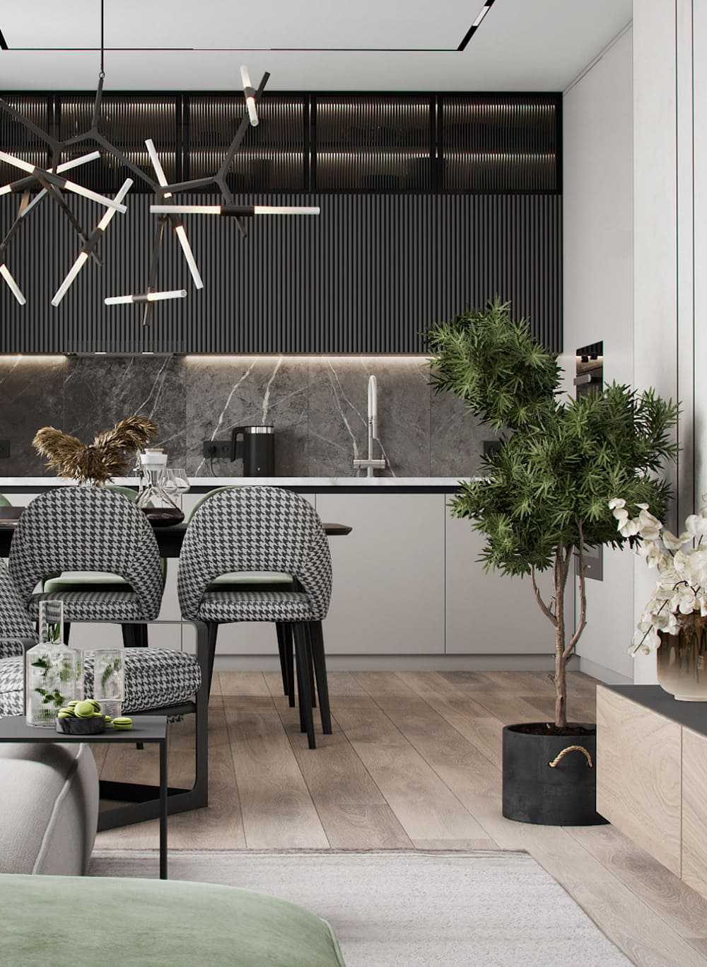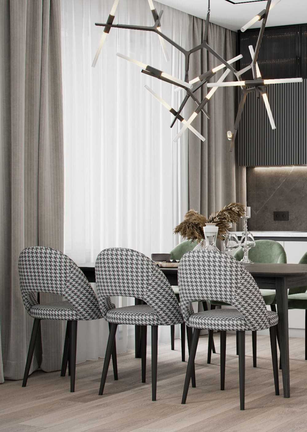 Столовая при кухне в стиле арт-деко.