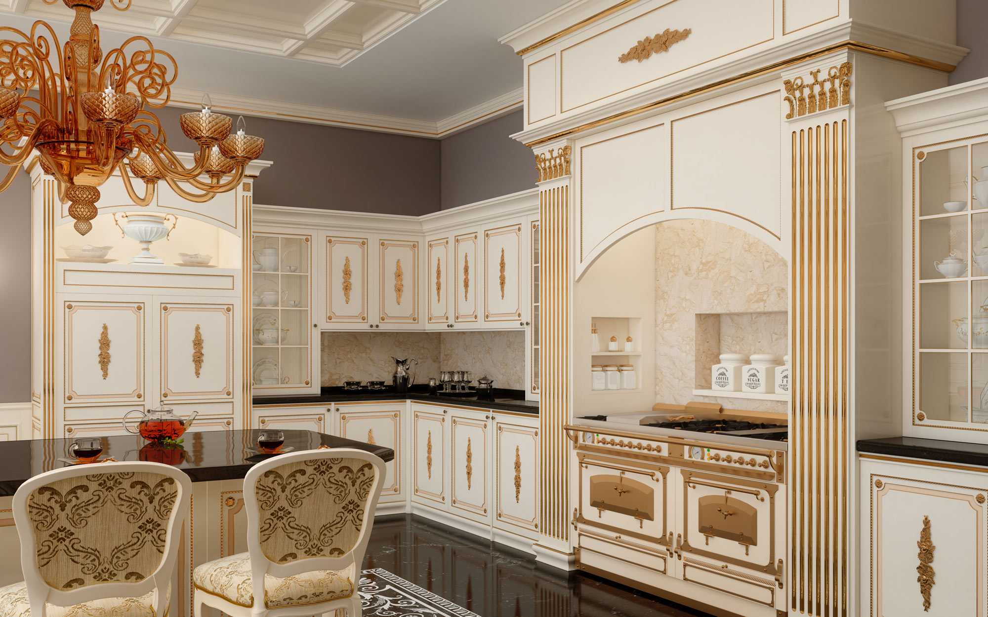 Подборка фотографий наглядно демонстрирует весь шик и непередаваемную роскошь такого дизайна. Если материальное положение позволяет, воссоздайте его в обстановке своей кухни.