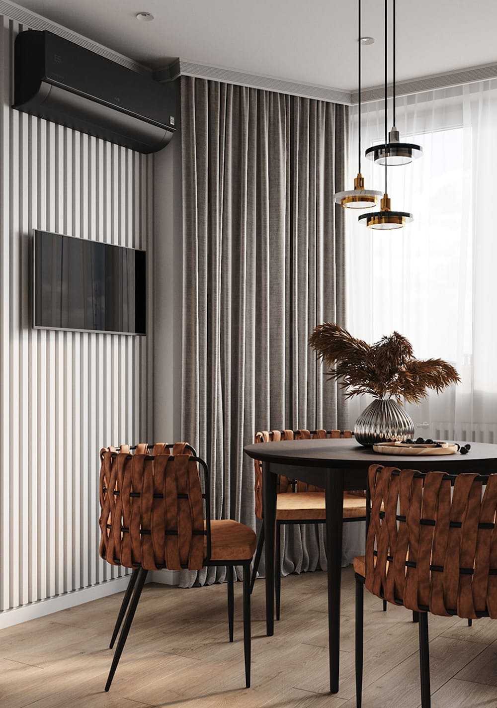 Темный оттенок стен подразумевает светлую мебель нейтральных тонов. Это же правило действует в обратную сторону. Люксовые породы дерева, кожа, бархат, камни и даже бамбук – все эти материалы комбинируются на всех уровнях оформления, создавая неповторимое впечатление от дизайна.