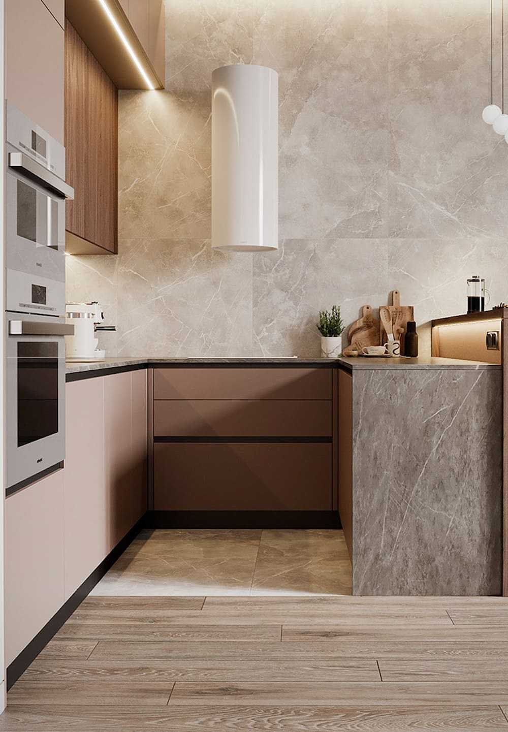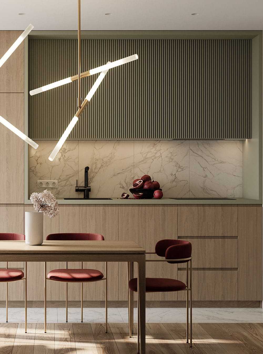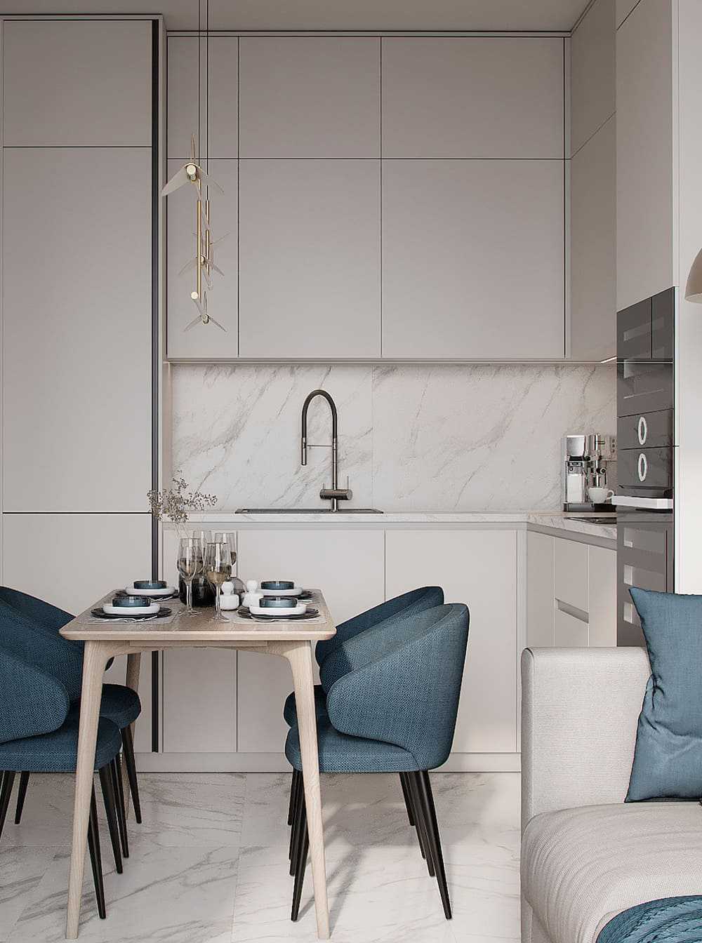 Не бойтесь экспериментировать с оттенками цветов, чтобы получить действительно выигрышную комбинацию. А в сочетании с деревом (деревянный остров или пол) вы создадите идеальный тандем на все времена.