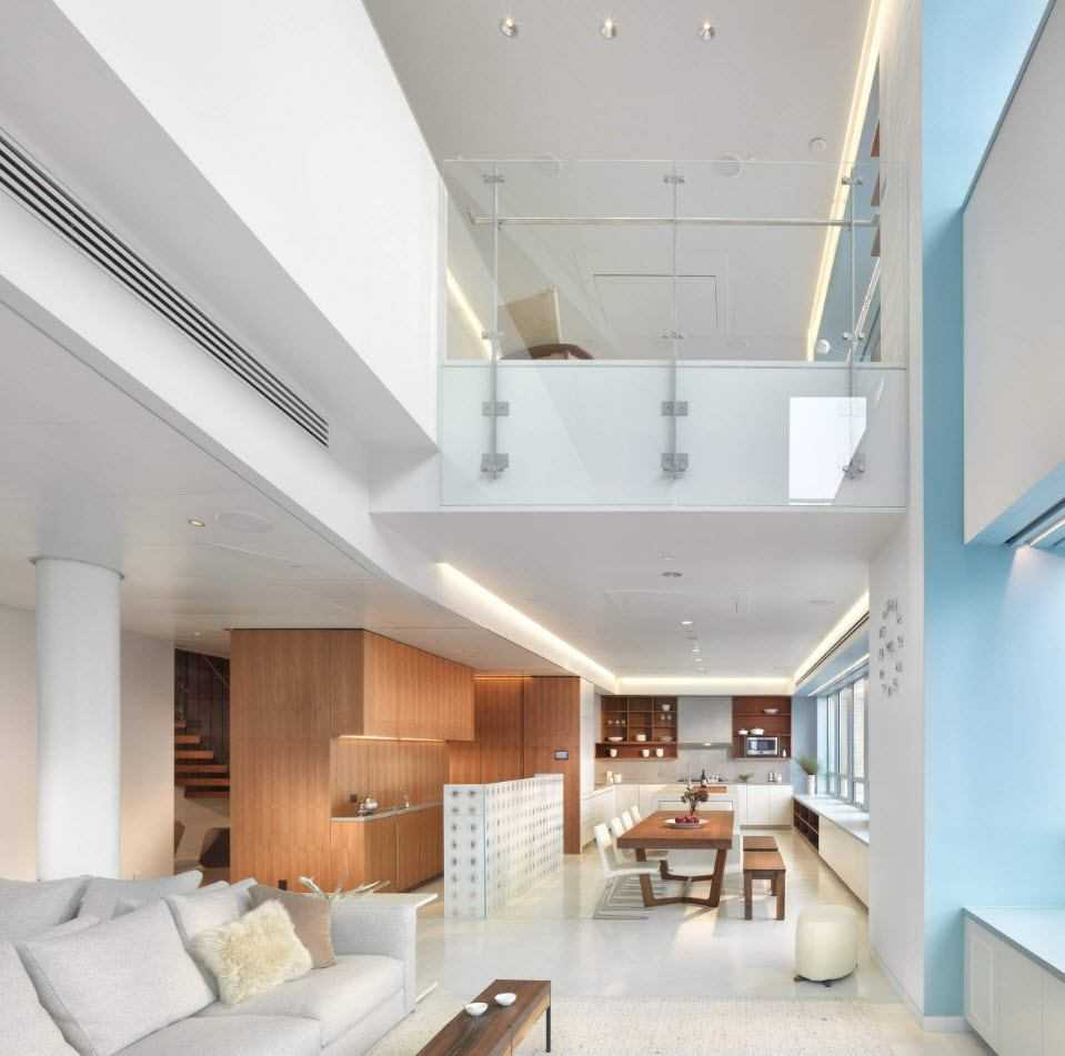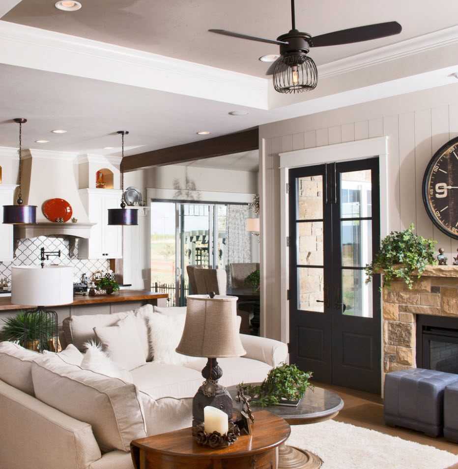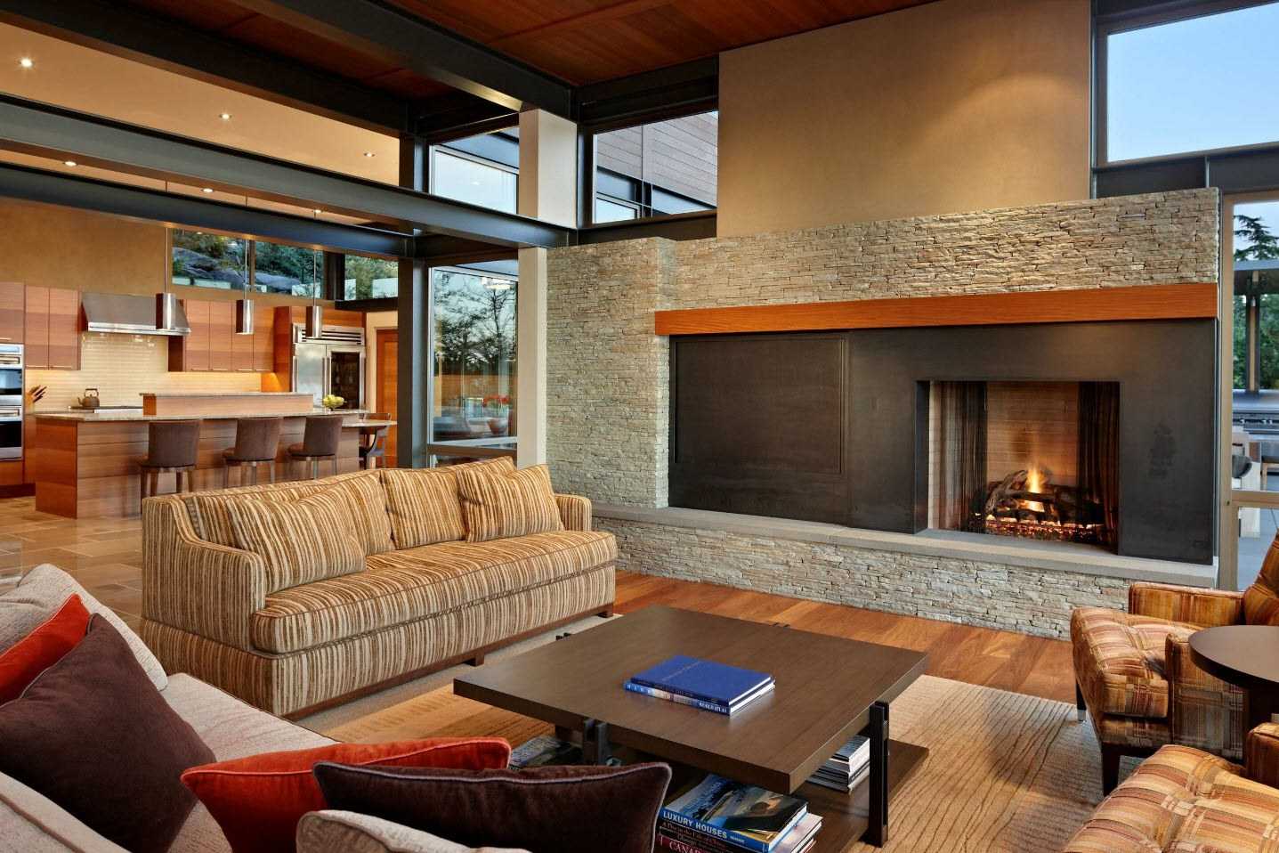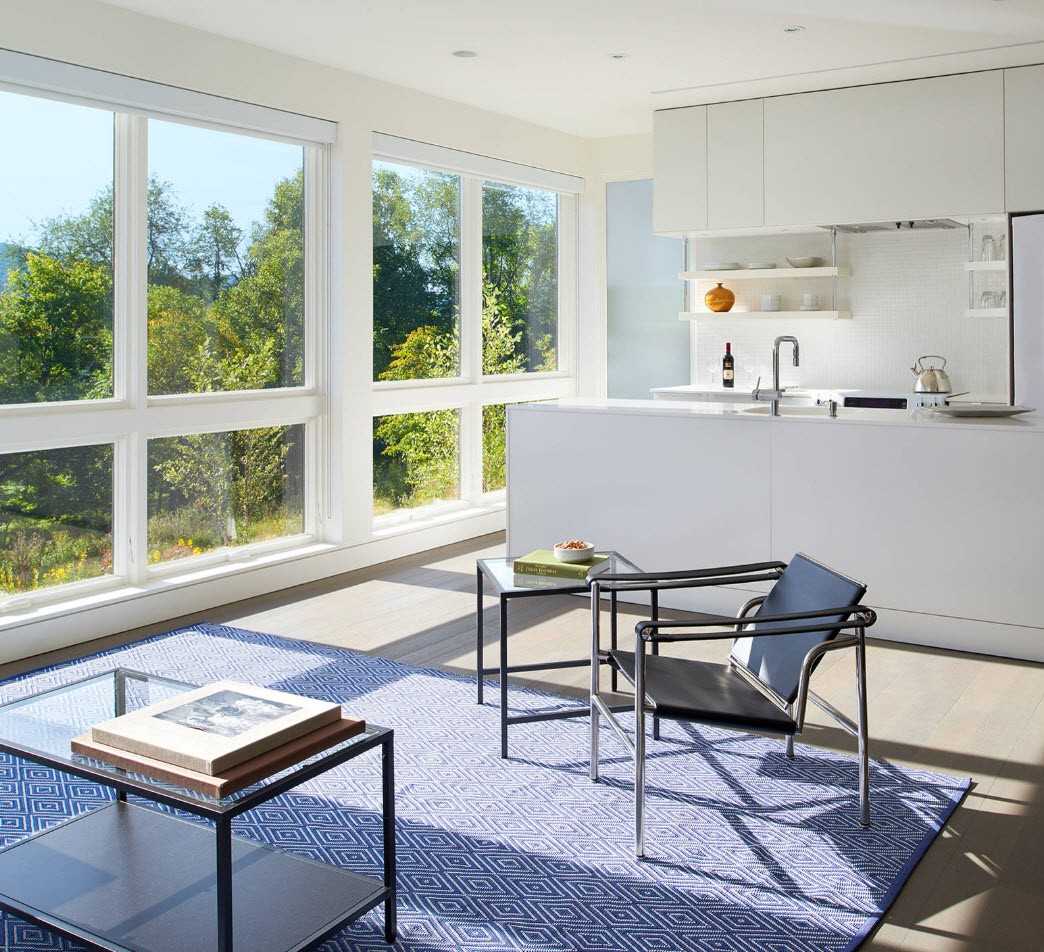 Существует много элегантных и творческих способов разделить или, точнее, создать символическую границу между кухней и жилыми помещениями, фактически не используя разные комнаты со стенами и дверями. Одним из модных подходов в современном дизайне является подъем одной из зон. Другим часто используемым вариантом для разделения между зоной приготовления пищи и гостиной в открытом помещении является стеклянная перегородка — модная и функциональная ловкость, которая дает определенную конфиденциальность между двумя зонами. Шум и запахи из кухни не попадают в гостиную.
