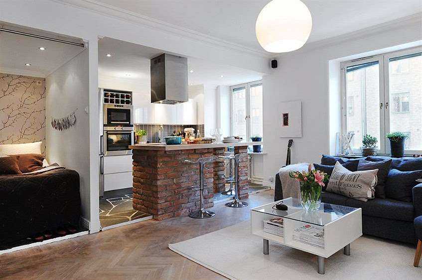 Дизайн проект кухни-гостиной 30 кв. м: разделение зон