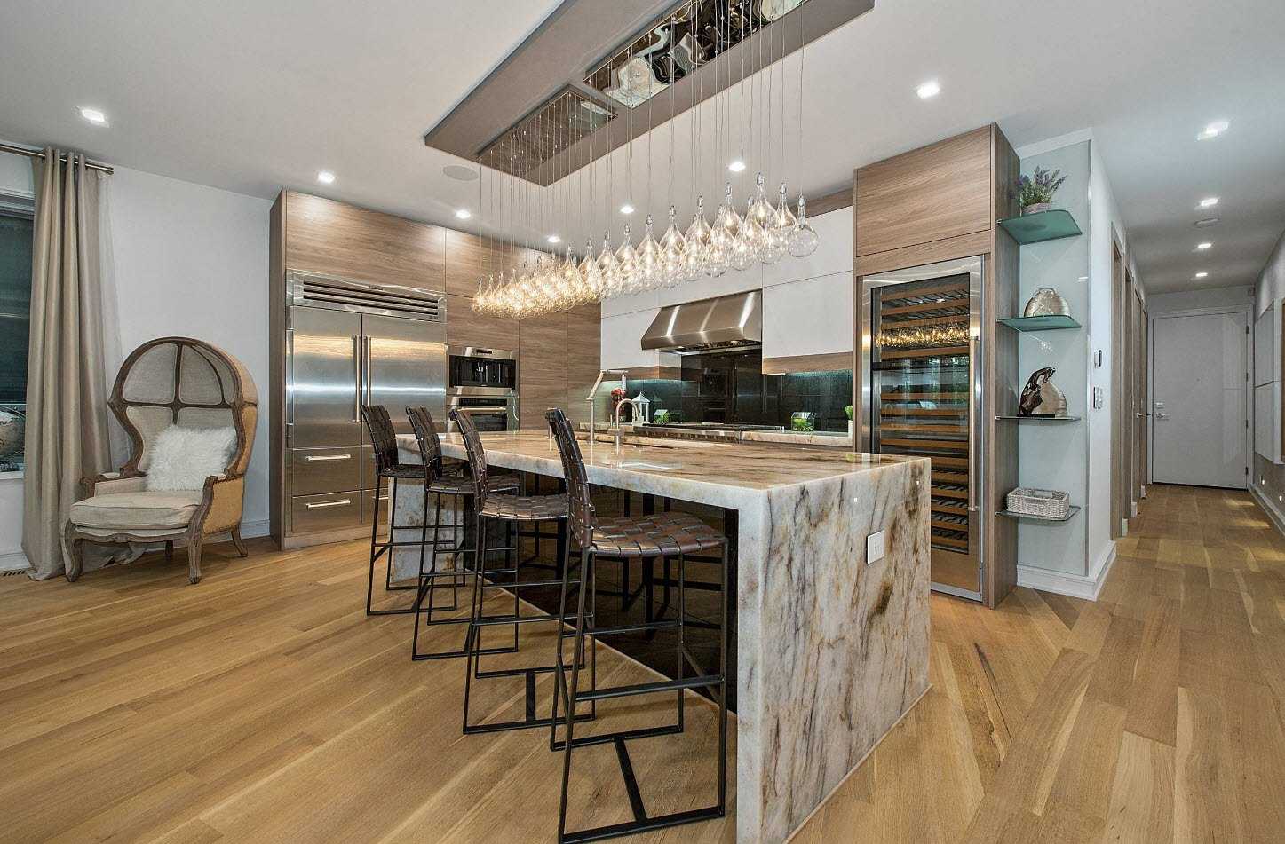Этот тип кухонного оборудования вращается вокруг одностенной установки, в которой размещаются различные модули, предназначенные для линейной конфигурации, что делает такой выбор самым простым и четким способом составить уголок для приготовления пищи в открытой гостиной. Таким образом, кухонная зона в открытой комнате остается как одно пространство без определенных границ между гостиной и остальной частью жилого пространства.
