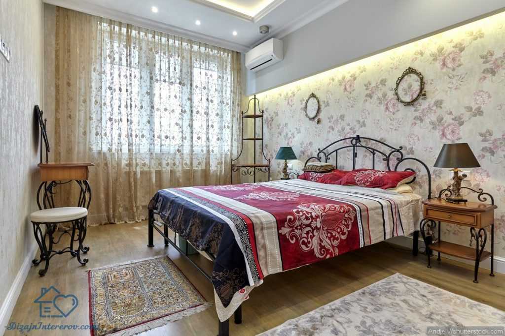 - мелкий рисунок (например, небольшие цветочки) зрительно уменьшают объем комнаты, а потому такие обои не стоит использовать в небольшой спальне;