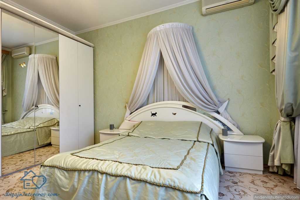 Нужно помнить, что темные тона зрительно уменьшают комнату. В маленьких спальнях их лучше избегать.