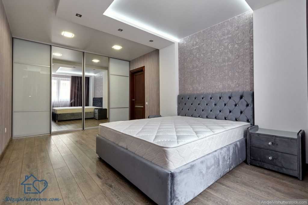 Удачным дополнением обоев для стен маленькой спальной комнаты станут зеркала. Их отражающие поверхности справляются с вопросом расширения пространства не хуже фотообойных пейзажей. При отделке спальни, зеркальной может стать как целая стеновая поверхность, так и отдельные ее зоны. Тут все будет зависеть от общего интерьерного решения. При добавлении в обстановку большого количества зеркал, надо не забыть организовать их правильную подсветку. Это поможет сделать атмосферу интимной и наполнить ее романтизмом.