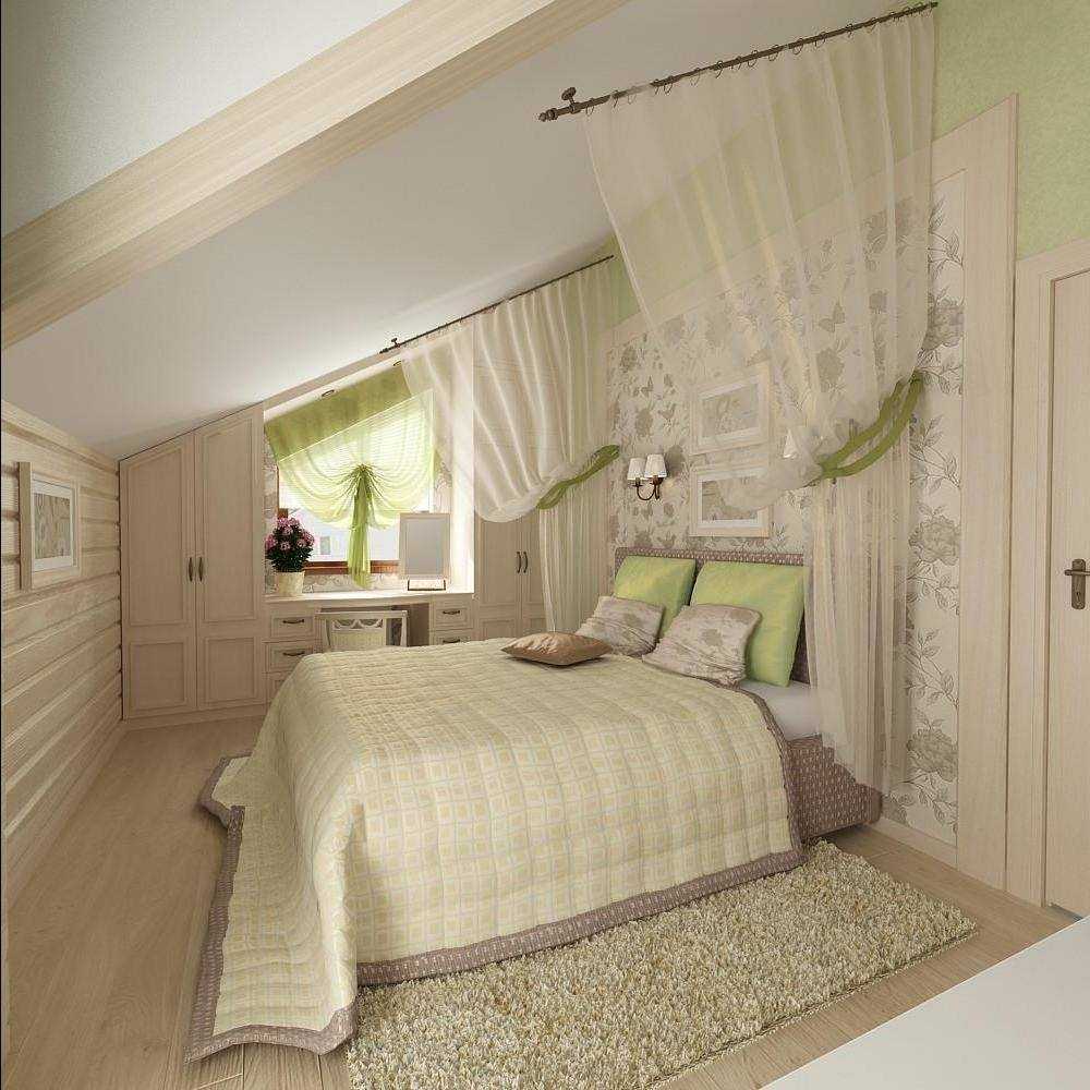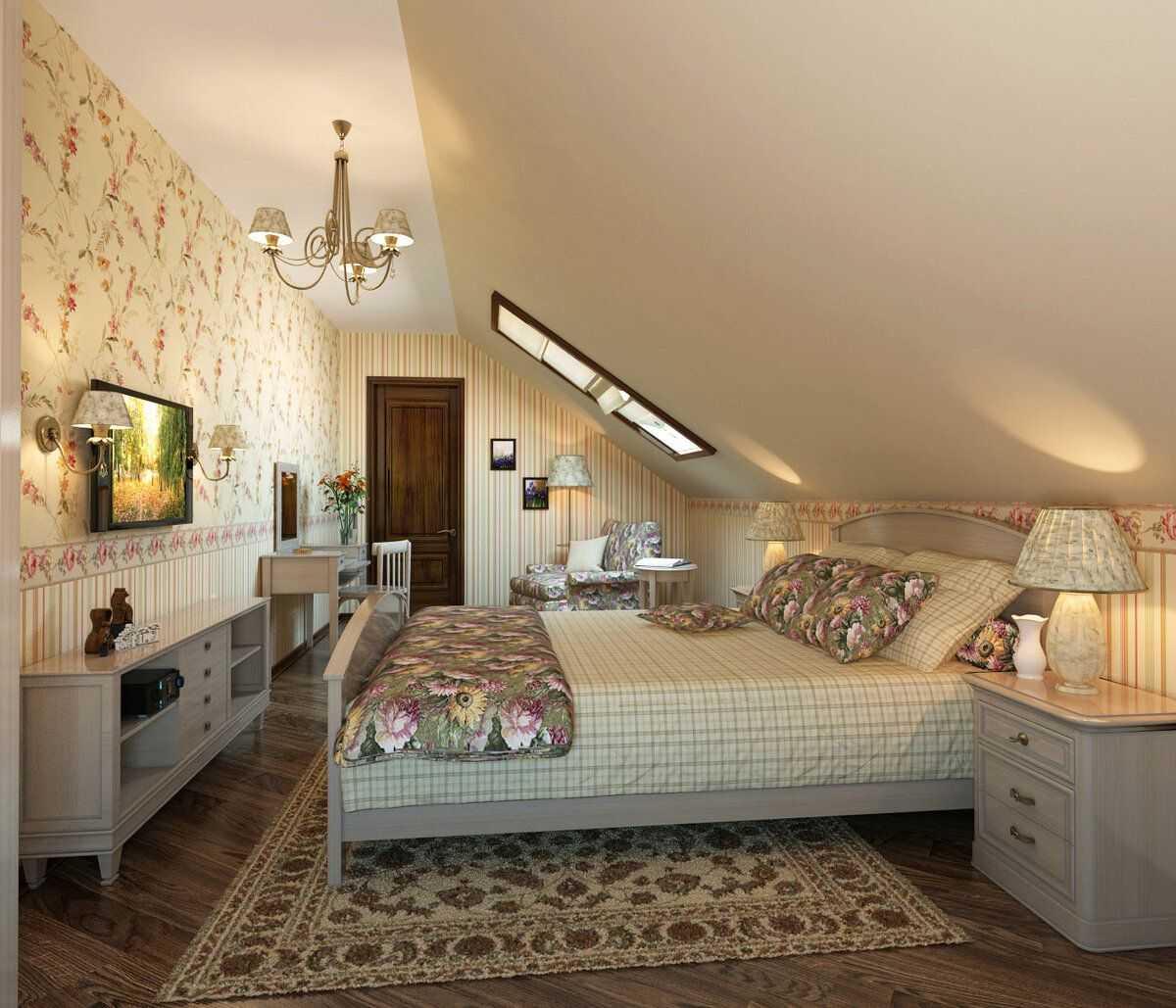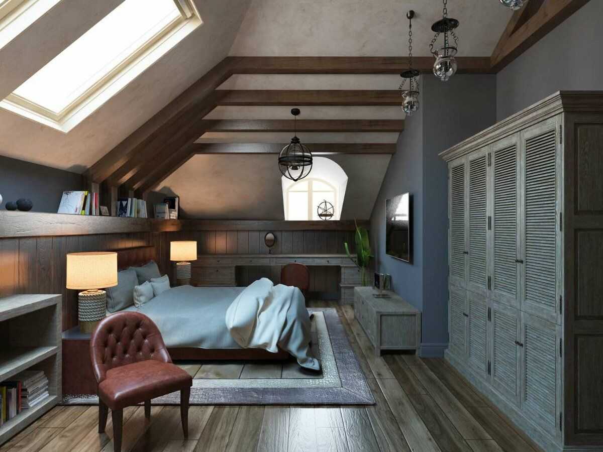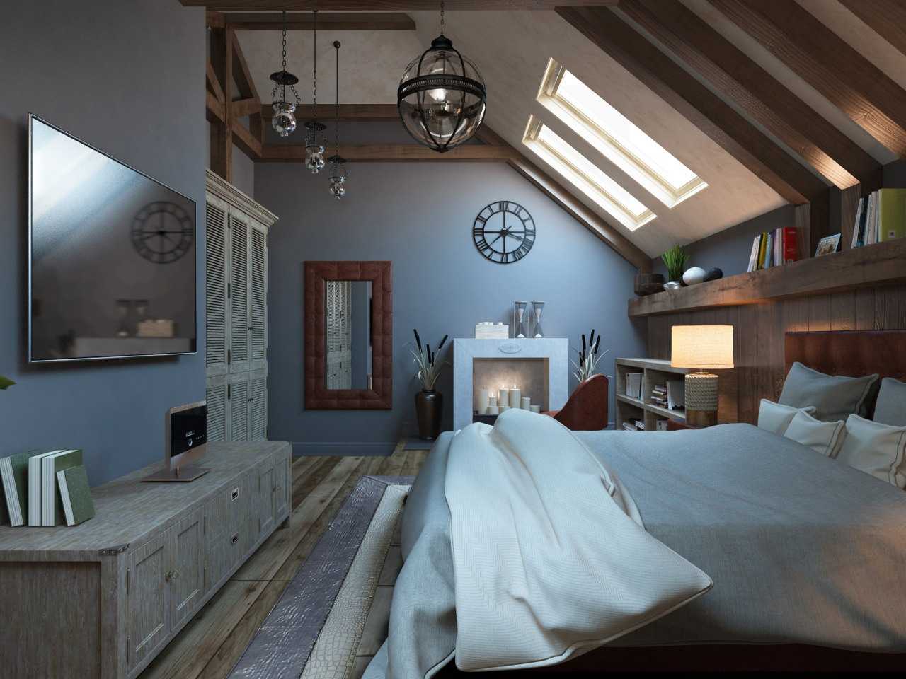 Определяющим в оформлении комнаты для сна является угол наклона потолка. Если скос не слишком низкий, то спальня в мансарде приобретает черты романтичности. Для оформления можно выбрать один из наиболее подходящих для этого стилей. Например, восточный, экостиль или современный традиционный.