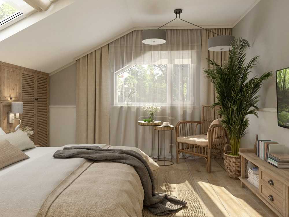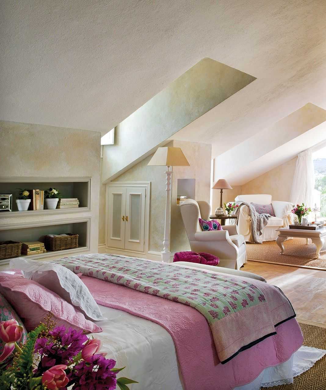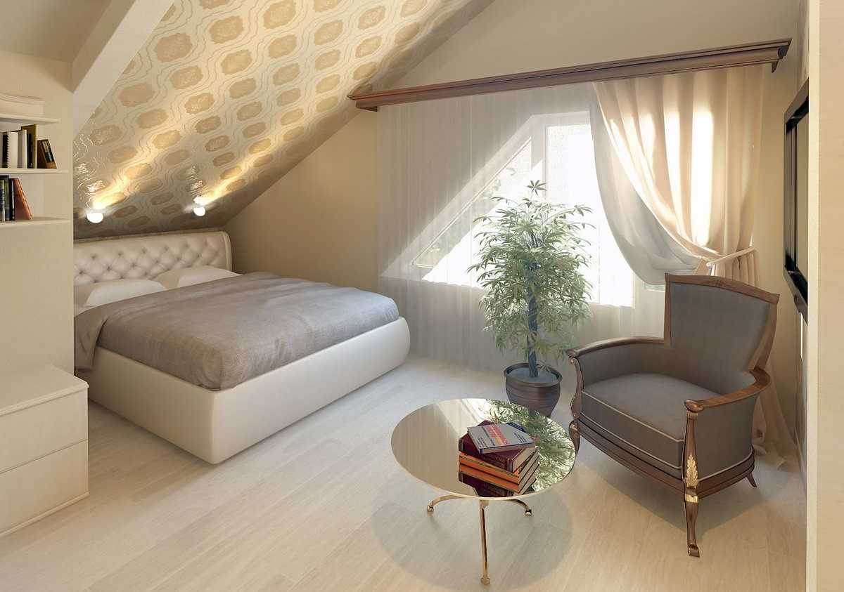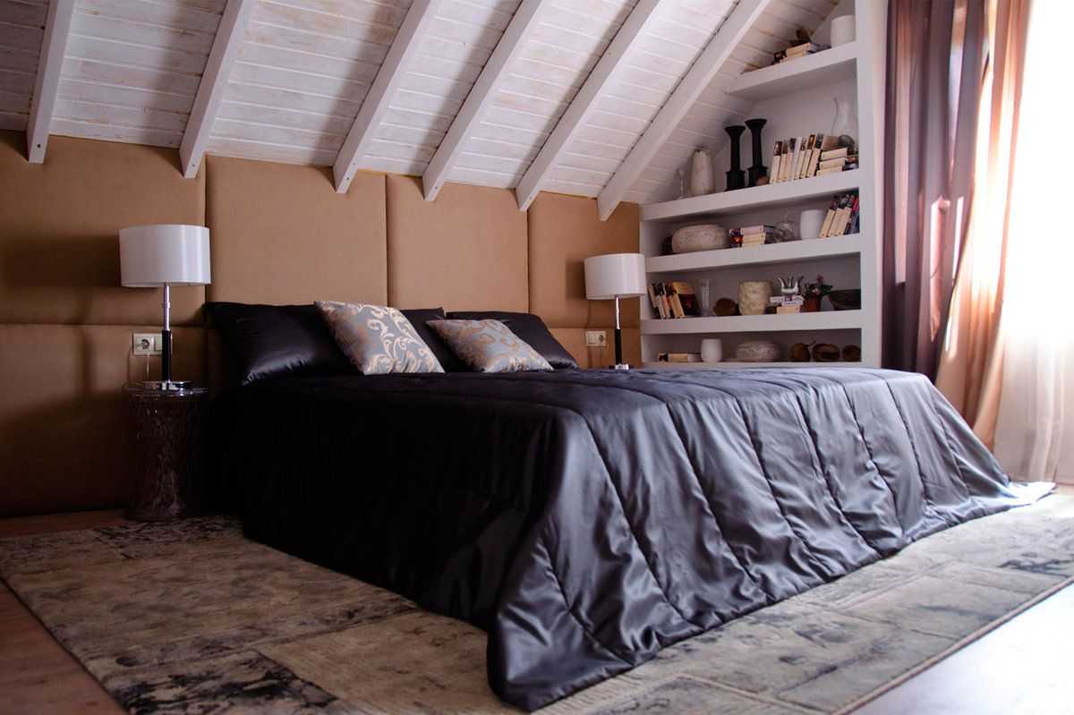 Определяющим в оформлении комнаты для сна является угол наклона потолка. Если скос не слишком низкий, то спальня в мансарде приобретает черты романтичности. Для оформления можно выбрать один из наиболее подходящих для этого стилей. Например, восточный, экостиль или современный традиционный.