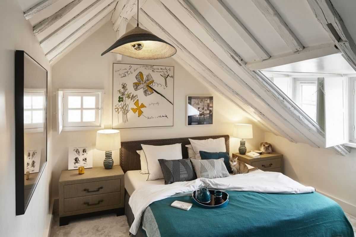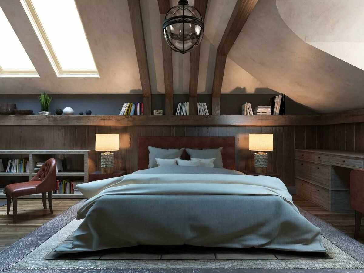 Спальня на мансарде — оригинальная комната для отдыха, которая при правильной планировке, отделке и декорировании станет вашей любимой территорией в доме. Сотня идей современных интерьеров чердачного помещения в представленной ниже фото-галерее.