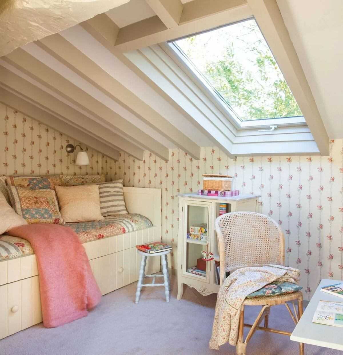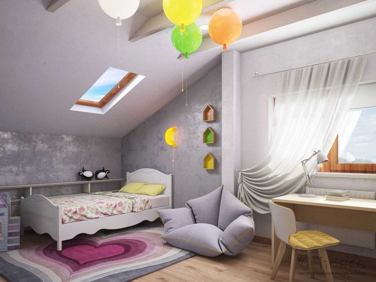 На фото интерьер небольшой подростковой мансардной спальни для девушки.