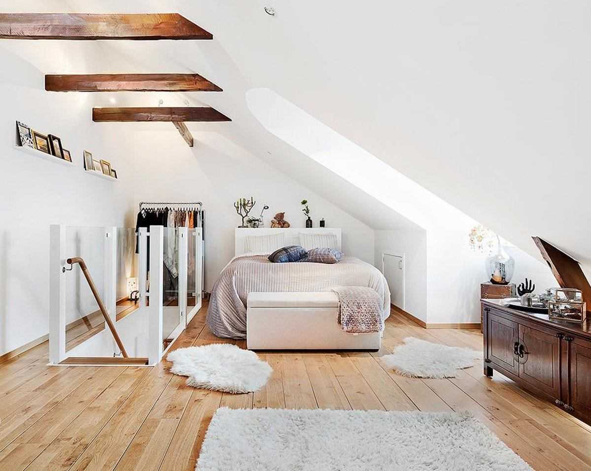 Осталось довести дизайн мансарды с двускатной крышей до совершенства.