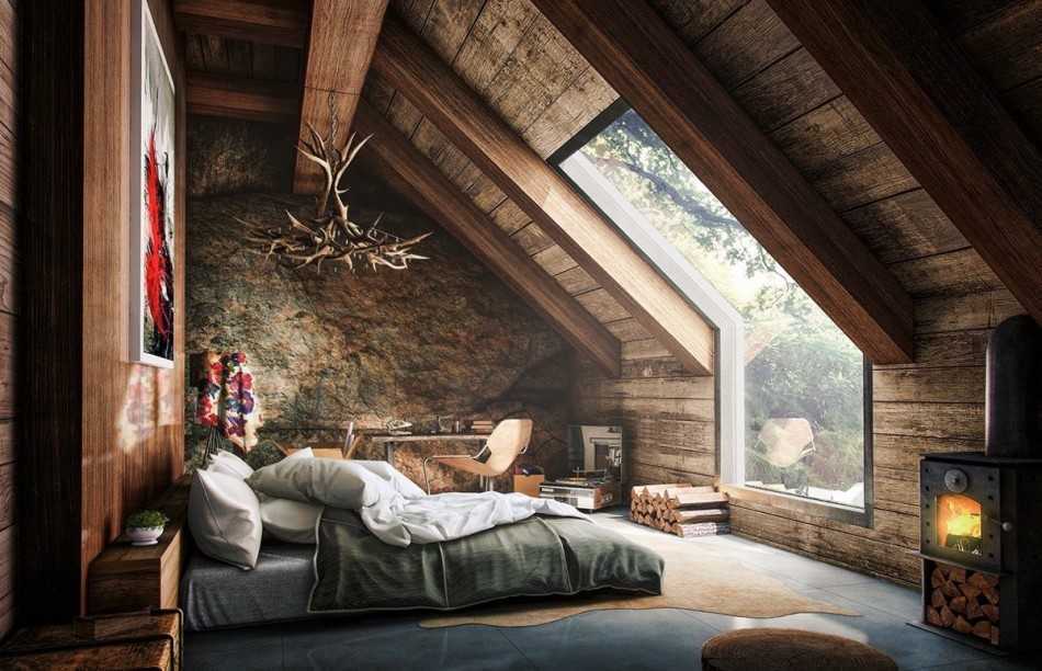 Для отделки мансарды в деревянном доме лучше всего подойдет экостиль, отдающий предпочтение таким материалам: