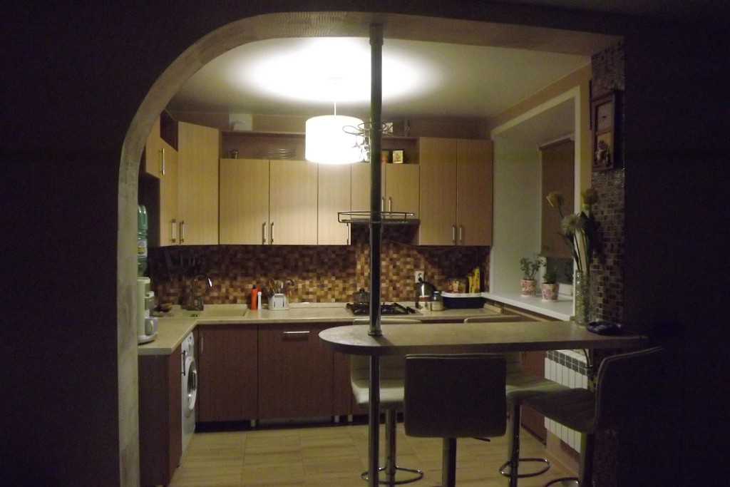 Совет! Такой вариант станет отличным способом заменить обеденную зону в маленькой кухне, чтобы сохранить больше место. Если планируется при этом полноценная обеденная зона, то для барной стойки вряд ли найдется место на небольшой территории.